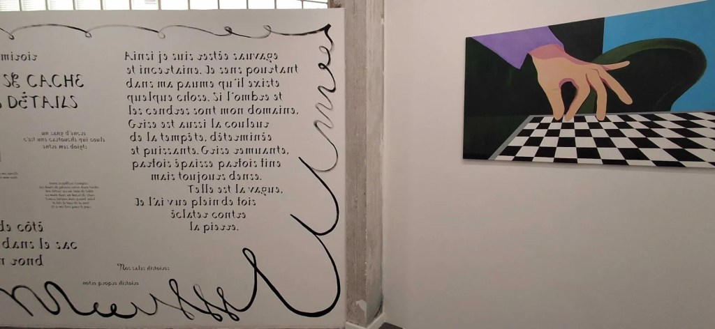 L’exposition explore la gaucherie non pas comme un défaut, mais comme une contrainte quotidienne. À l’entrée, déjà, deux ensembles de mots inscrits sur les murs semblent s’opposer, séparés par le spectateur : dextre, droit, dieu, homme, en miroir de sinister, gauche, diable, femme. « La main gauche est souvent associée à la maladresse, à quelque chose de négatif. Mais c’est aussi la main du cœur, celle de l’instinct« , analyse la médiation du centre d’art.